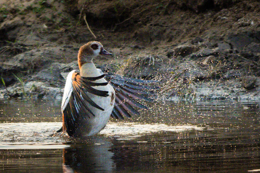 Long Pool is the largest of the 4 pools and one of only 2 pools that still had water when we arrived. At its largest it can measure up to 6 km but it was much shrunken by the drought. It remained a magnet for water birds and boasted a healthy croc and hippo population. We spent quite a few hours there practicing flying shots from the various view points, and on one glorious occasion, saw an African skimmer catching frogs and fish as it skimmed the mirrored surface.